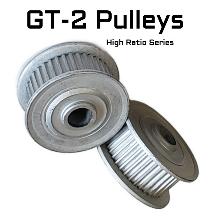 Individual Pulleys for Swapping Ratios and Replacement Belts .   These are GT-2 Pitch Series for Higher Ratios 15% -40%.   Used only with matching GT-2 Tooth Belts.